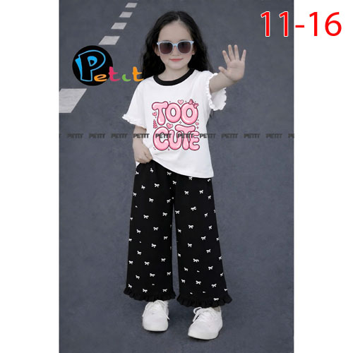 A510464 - (5/5)Set bé gái áo tay bèo nhẹ nhàng phối quần ống suông in nơ chất thun cotton 4C_Size 11