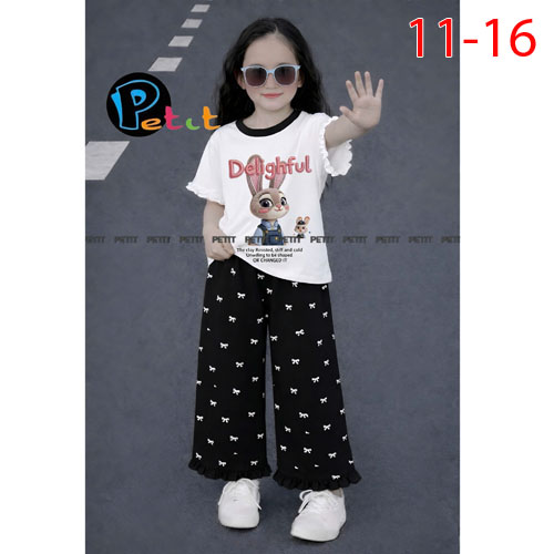 A510465 - (5/5)Set bé gái áo tay bèo nhẹ nhàng phối quần ống suông in nơ chất thun cotton 4C_Size 11