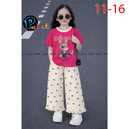 A510467 - (5/5)Set bé gái áo tay bèo nhẹ nhàng phối quần ống suông in nơ chất thun cotton 4C_Size 11