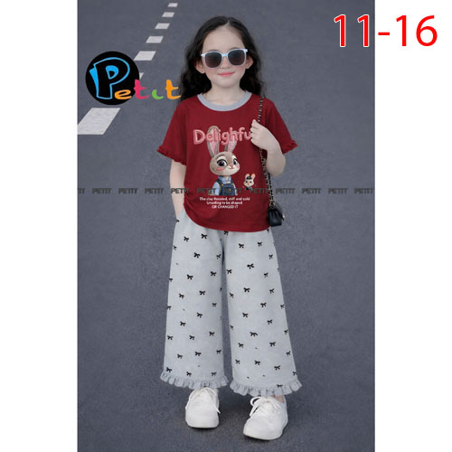 A510469 - (5/5)Set bé gái áo tay bèo nhẹ nhàng phối quần ống suông in nơ chất thun cotton 4C_Size 11