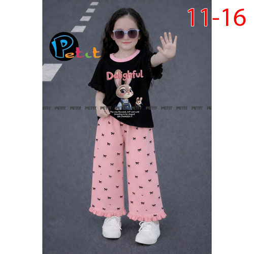 A510470 - (5/5)Set bé gái áo tay bèo nhẹ nhàng phối quần ống suông in nơ chất thun cotton 4C_Size 11