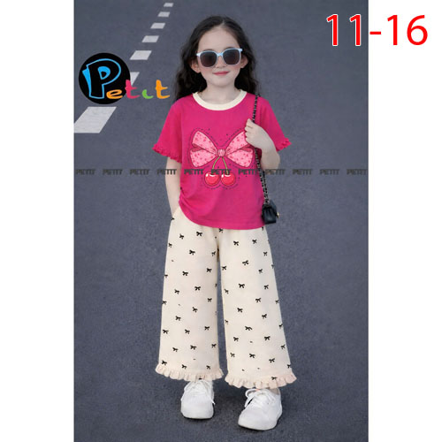 A510473 - (5/5)Set bé gái áo tay bèo nhẹ nhàng phối quần ống suông in nơ chất thun cotton 4C_Size 11
