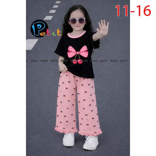 A510475 - (5/5)Set bé gái áo tay bèo nhẹ nhàng phối quần ống suông in nơ chất thun cotton 4C_Size 11