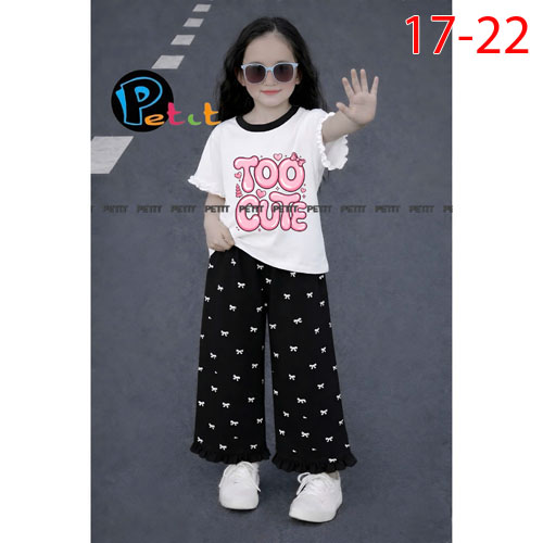 A510479 - (5/5)Set bé gái áo tay bèo nhẹ nhàng phối quần ống suông in nơ chất thun cotton 4C_Size 17