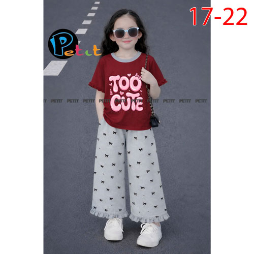A510481 - (5/5)Set bé gái áo tay bèo nhẹ nhàng phối quần ống suông in nơ chất thun cotton 4C_Size 17
