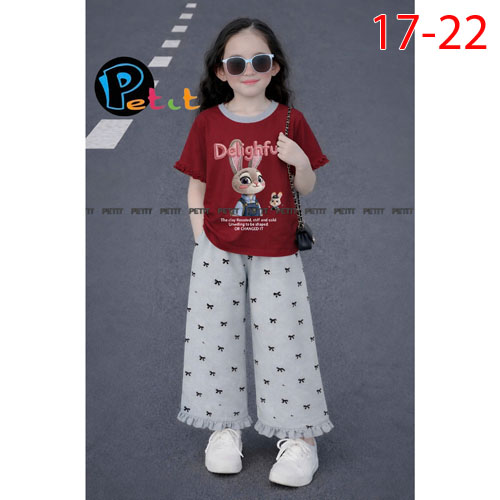 A510484 - (5/5)Set bé gái áo tay bèo nhẹ nhàng phối quần ống suông in nơ chất thun cotton 4C_Size 17