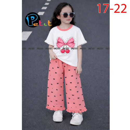 A510486 - (5/5)Set bé gái áo tay bèo nhẹ nhàng phối quần ống suông in nơ chất thun cotton 4C_Size 17