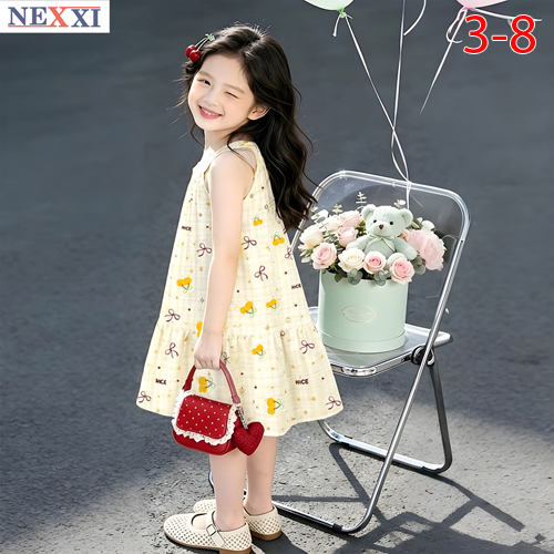 A510491 - Nexxi đầm cổ yếm diện hè vải cotton Hàn họa tiết dễ thương, ngọt ngào_Size 3-8