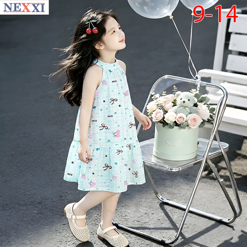 A510497 - Nexxi đầm cổ yếm diện hè vải cotton Hàn họa tiết dễ thương, ngọt ngào_Size 9-14