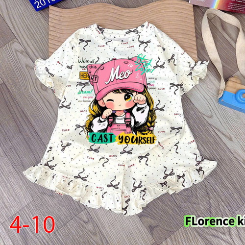 A510534 - Bộ đùi lai bèo dễ thương cho bé gái thun cotton 4c in cô bé_Size 4-10