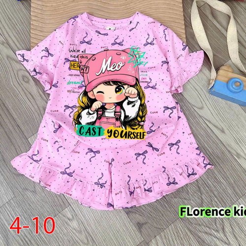 A510536 - Bộ đùi lai bèo dễ thương cho bé gái thun cotton 4c in cô bé_Size 4-10