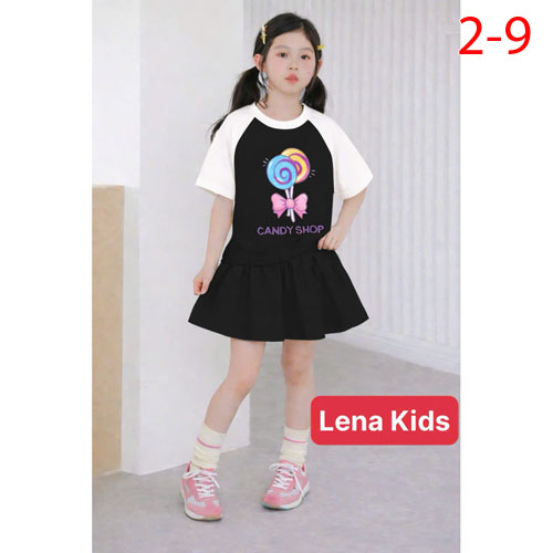 A510706 - Set váy (có chip) phối in hình siêu yêu cho bé gái chất thun cotton 4c_Size 2-9
