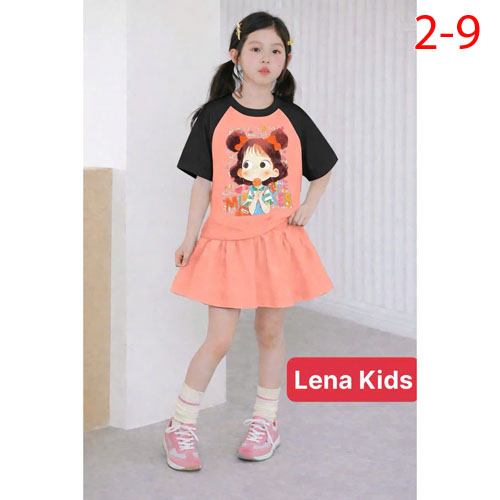 A510708 - Set váy (có chip) phối in hình siêu yêu cho bé gái chất thun cotton 4c_Size 2-9