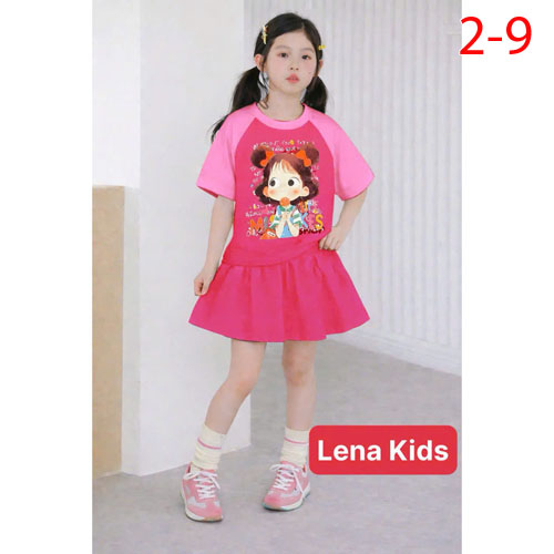 A510709 - Set váy (có chip) phối in hình siêu yêu cho bé gái chất thun cotton 4c_Size 2-9