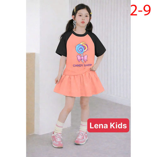 A510710 - Set váy (có chip) phối in hình siêu yêu cho bé gái chất thun cotton 4c_Size 2-9