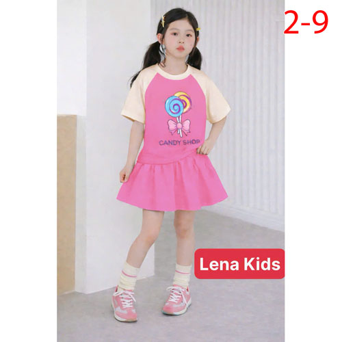 A510712 - Set váy (có chip) phối in hình siêu yêu cho bé gái chất thun cotton 4c_Size 2-9