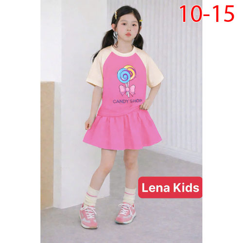 A510713 - Set váy (có chip) phối in hình siêu yêu cho bé gái chất thun cotton 4c_Size 10-15