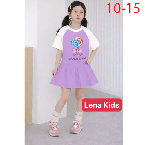 A510714 - Set váy (có chip) phối in hình siêu yêu cho bé gái chất thun cotton 4c_Size 10-15
