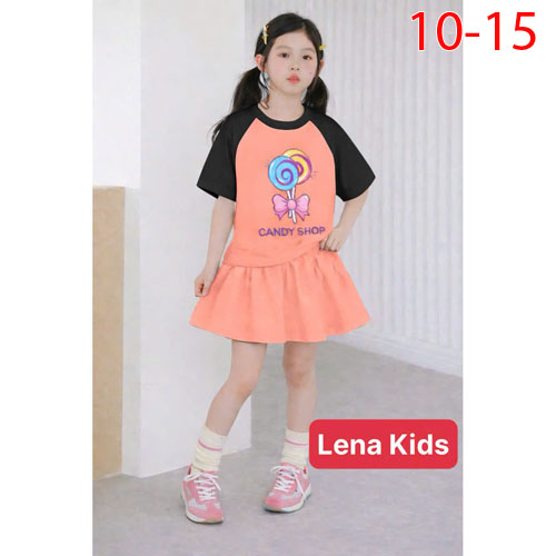 A510715 - Set váy (có chip) phối in hình siêu yêu cho bé gái chất thun cotton 4c_Size 10-15