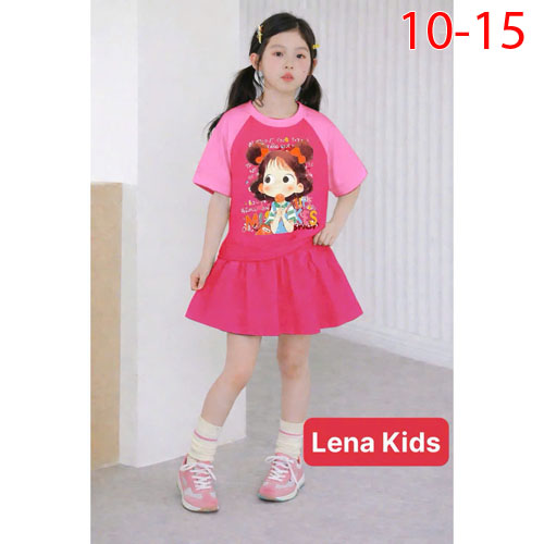 A510716 - Set váy (có chip) phối in hình siêu yêu cho bé gái chất thun cotton 4c_Size 10-15