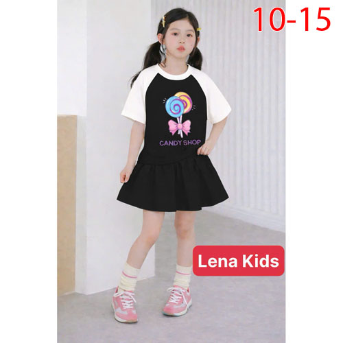 A510719 - Set váy (có chip) phối in hình siêu yêu cho bé gái chất thun cotton 4c_Size 10-15