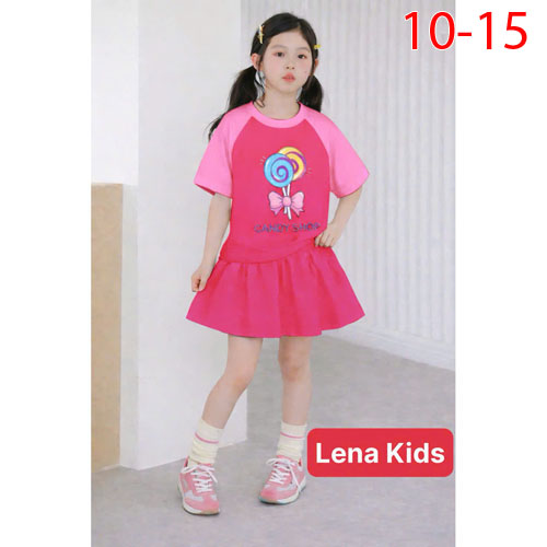 A510721 - Set váy (có chip) phối in hình siêu yêu cho bé gái chất thun cotton 4c_Size 10-15