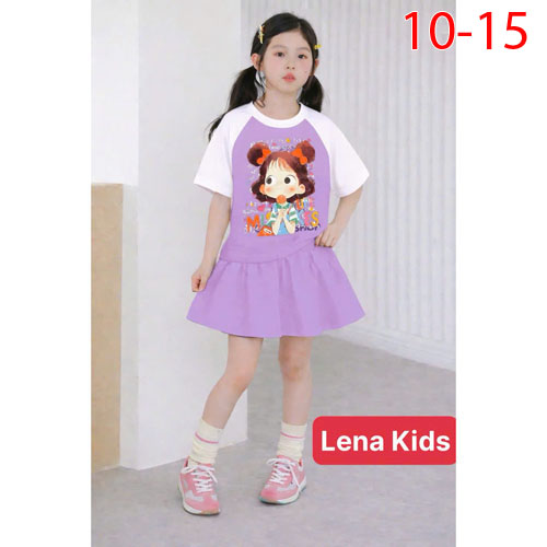 A510722 - Set váy (có chip) phối in hình siêu yêu cho bé gái chất thun cotton 4c_Size 10-15