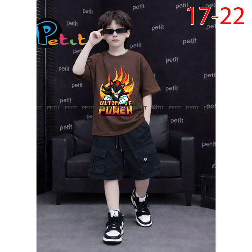 A511493 - Set bé trai phong cách thể thao năng động thun cotton 4c in chữ A in tổng hợp_Size 17-22