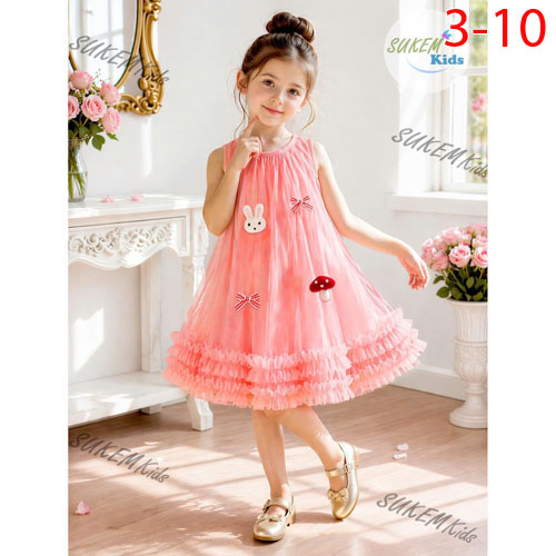 A511526 - Đầm được may 3 lớp 2 lớp lưới nhún xòe tùng cắt lưới nhún tạo đô xòe bồng bềnh_Size 3-10