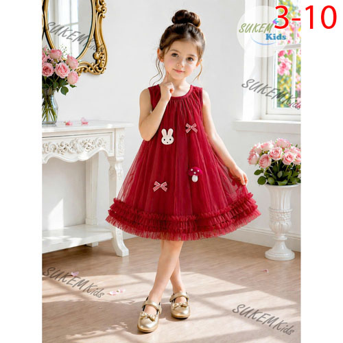 A511527 - Đầm được may 3 lớp 2 lớp lưới nhún xòe tùng cắt lưới nhún tạo đô xòe bồng bềnh_Size 3-10