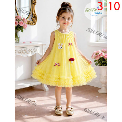 A511528 - Đầm được may 3 lớp 2 lớp lưới nhún xòe tùng cắt lưới nhún tạo đô xòe bồng bềnh_Size 3-10