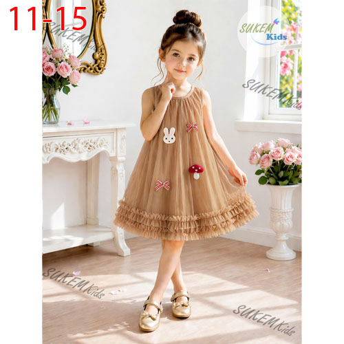 A511532 - Đầm được may 3 lớp 2 lớp lưới nhún xòe tùng cắt lưới nhún tạo đô xòe bồng bềnh_Size 11-15