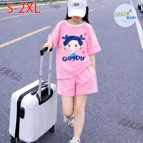 A511658 - (1/5)Bộ short thể thao hình in ép siêu cưng cho bé gái chạy dây viền phối màu in cô bé GOO