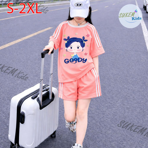 A511659 - (1/5)Bộ short thể thao hình in ép siêu cưng cho bé gái chạy dây viền phối màu in cô bé GOO