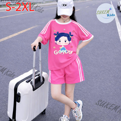 A511660 - (1/5)Bộ short thể thao hình in ép siêu cưng cho bé gái chạy dây viền phối màu in cô bé GOO