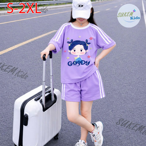 A511661 - (1/5)Bộ short thể thao hình in ép siêu cưng cho bé gái chạy dây viền phối màu in cô bé GOO