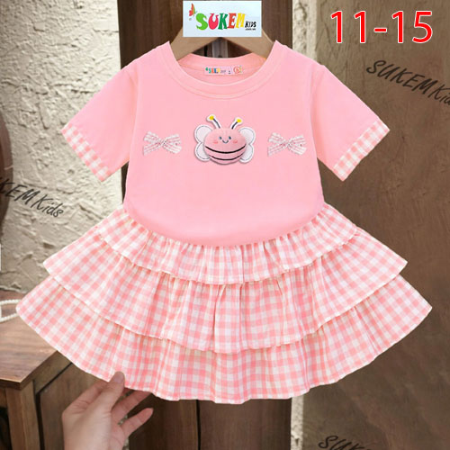 A511680 - Set váy áo thun ngắn tay phối karo đính cham ong nơ chân váy may 3 tầng vải karo_Size 11-1