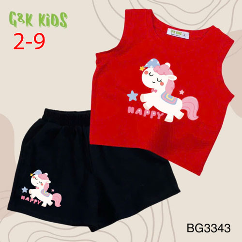 A511946 - Bộ quần đùi áo sát nách bé gái thun coton 4c in con ngựa Happy_Size 2-9