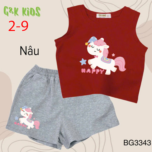 A511949 - Bộ quần đùi áo sát nách bé gái thun coton 4c in con ngựa Happy_Size 2-9