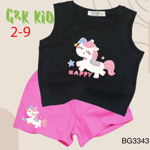 A511951 - Bộ quần đùi áo sát nách bé gái thun coton 4c in con ngựa Happy_Size 2-9