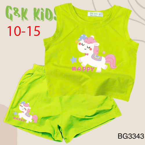 A511954 - Bộ quần đùi áo sát nách bé gái thun coton 4c in con ngựa Happy_Size 10-15