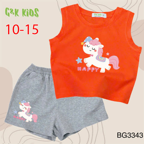 A511957 - Bộ quần đùi áo sát nách bé gái thun coton 4c in con ngựa Happy_Size 10-15