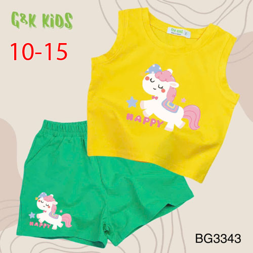 A511960 - Bộ quần đùi áo sát nách bé gái thun coton 4c in con ngựa Happy_Size 10-15