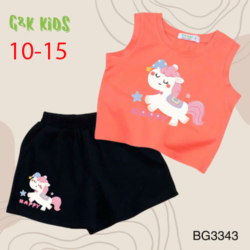 A511964 - Bộ quần đùi áo sát nách bé gái thun coton 4c in con ngựa Happy_Size 10-15