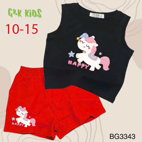 A511967 - Bộ quần đùi áo sát nách bé gái thun coton 4c in con ngựa Happy_Size 10-15