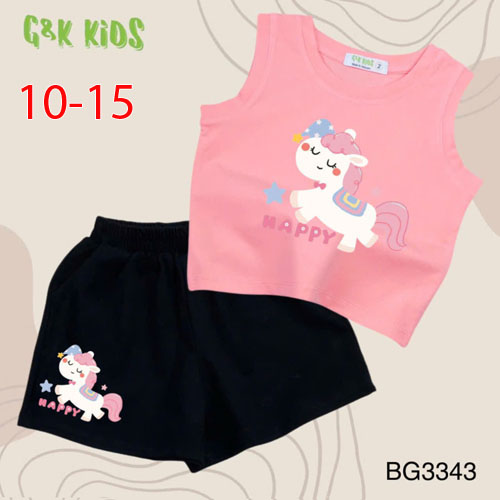 A511968 - Bộ quần đùi áo sát nách bé gái thun coton 4c in con ngựa Happy_Size 10-15