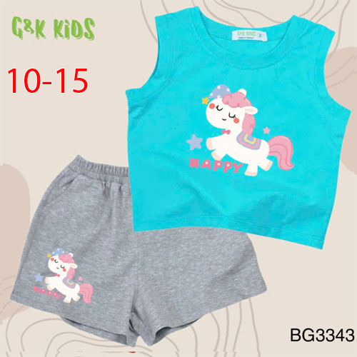 A511969 - Bộ quần đùi áo sát nách bé gái thun coton 4c in con ngựa Happy_Size 10-15