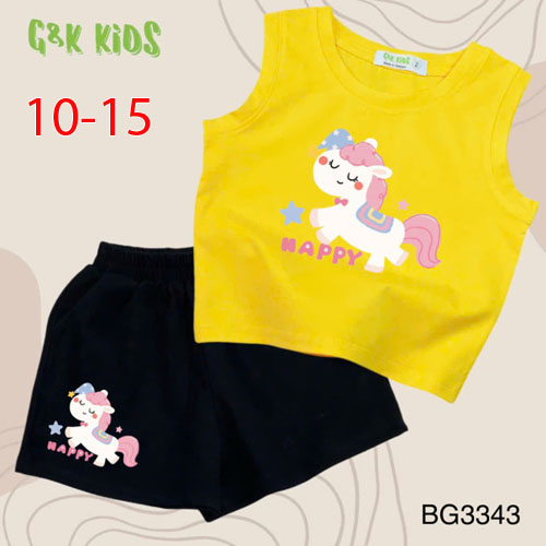A511970 - Bộ quần đùi áo sát nách bé gái thun coton 4c in con ngựa Happy_Size 10-15