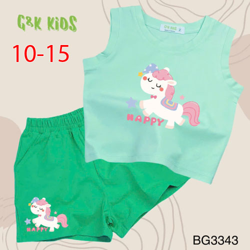 A511971 - Bộ quần đùi áo sát nách bé gái thun coton 4c in con ngựa Happy_Size 10-15