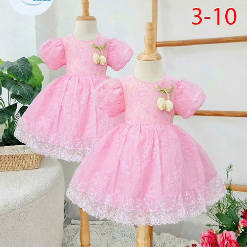 A512209 - Đầm may tùng xòe vải thêu ren 5d vải nhập sang trọng đính hoa tulip 2 lớp tay phồng 1 lớp